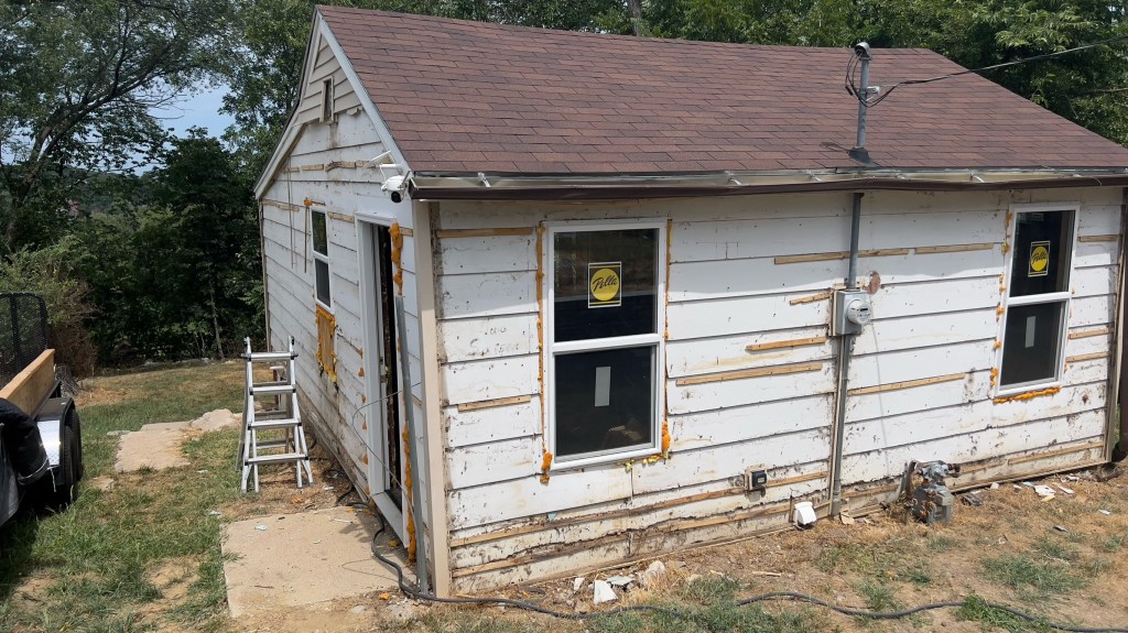 The plumbing and electrical are nearly done and awaiting inspection, so we’ve switched to outside work just in time for a long stretch of summer heat. But the house is already looking better with the worn and damaged yellow siding removed!