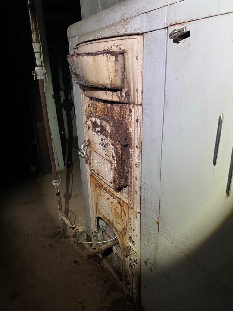 The history here is pretty cool, it just looks creepy right now without any lights. There’s a coal room and a furnace from A. Y. McDonald Manufacturing Company (which had been around since 1856!) that’s been retrofitted a time or two.