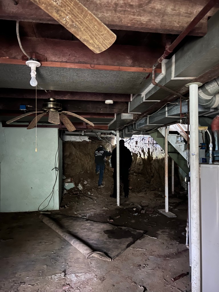 Some time ago, water damage (another frozen pipe, perhaps?) and a old, red brick foundation led to a failed wall. Amazingly, this is a relatively easy fix! Once it’s complete, we’ll be able to bring this basement into the 21st Century.